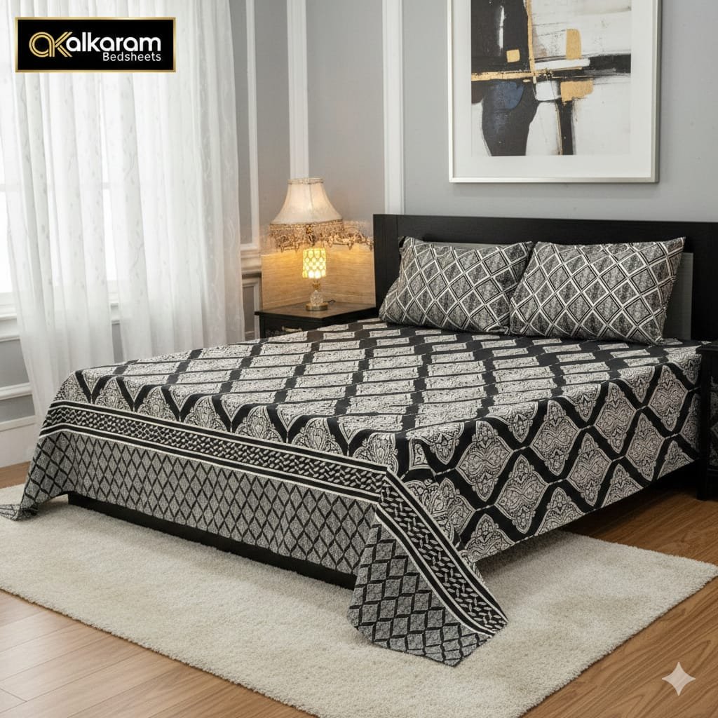 Gift Pack Bedsheet SET Soft Cotton (SilverBlack)